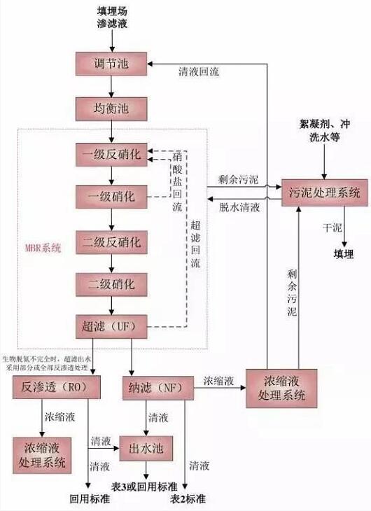 基于上述特點,僅依靠單獨的處理方法(生物法、物理法、化學法)很難滿足《生活垃圾填埋污染控制標準》(gb16889-2008)的排放標準。處理滲濾液必須采用物理、化學和生物相結合的方法,經濟可行、穩定,達到標準要求。