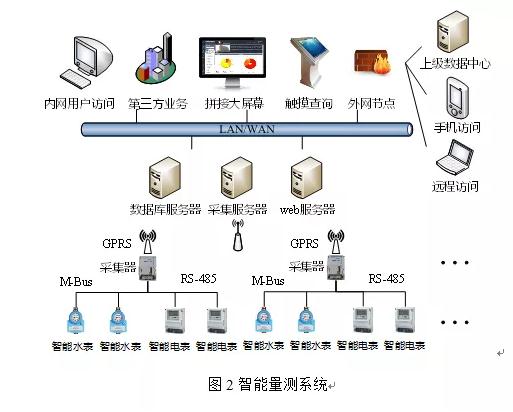 通信系統(tǒng)分為遠(yuǎn)程通信和本地通信。遠(yuǎn)程通信主要采用GPRS[2]協(xié)議,本地通信主要采用M-Bus總線。其中水表通過M-Bus[3]總線將數(shù)據(jù)傳至采集器,采集器與主站間采用GPRS實現(xiàn)數(shù)據(jù)交互。計量數(shù)據(jù)可以通過以太網(wǎng)滿足多種方式的內(nèi)外網(wǎng)訪問。智能量測系統(tǒng)的構(gòu)建,進(jìn)一步豐富了反滲水處理系統(tǒng)廢水回收的科學(xué)手段,為醫(yī)院面向節(jié)能建設(shè)的頂層設(shè)計決策提供了有效的數(shù)據(jù)支持。