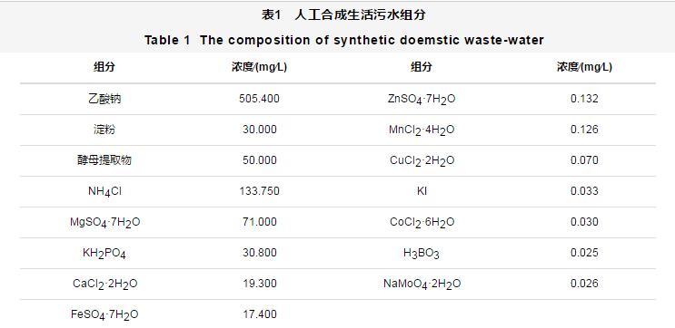 MBBR-MBR組合工藝通過蠕動泵進水,進水為人工合成生活污水,其具體組分如表1所示。